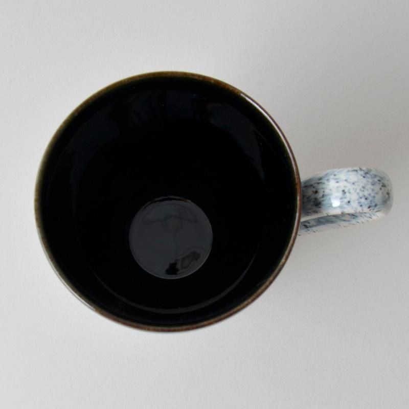 緩やかにカーブした形で、グラデーションが特徴の大きなマグです。 内側は真っ黒で、茶渋が目立たないようになっています。 取手は大きめに作られていて、重さを感じづらい設計です。 容量はたっぷり400ml(満水時)入ります。 継ぎ足しが少なくて済み、読書のお供にぴったりです。 一度慣れると手放せなくなるサイズ感です。 電子レンジが使用可能ですので、温め直しも簡単。 たっぷりコーヒーやカフェオレを飲む人にオススメのマグです。 かっこいいマグなので、父の日のギフトに人気です。