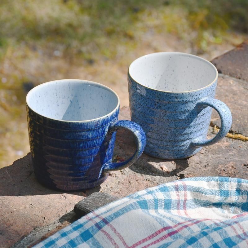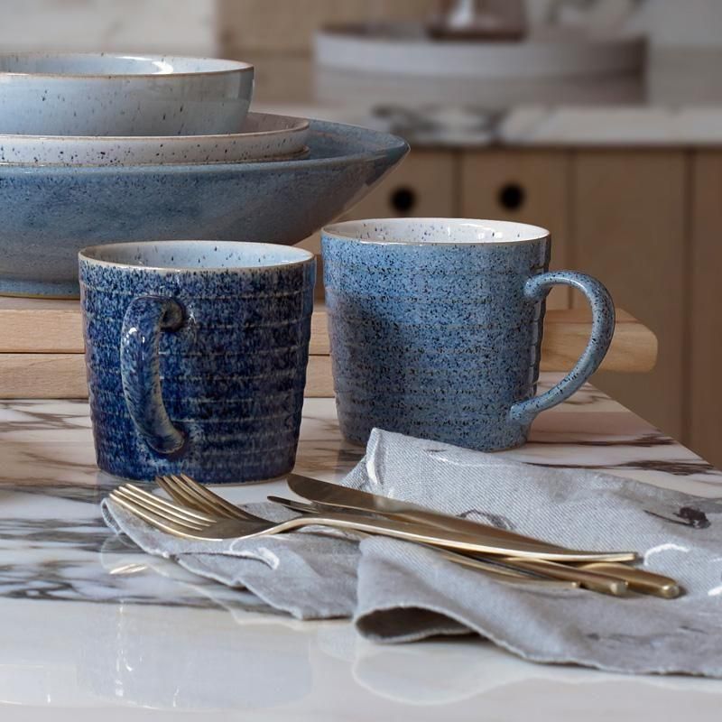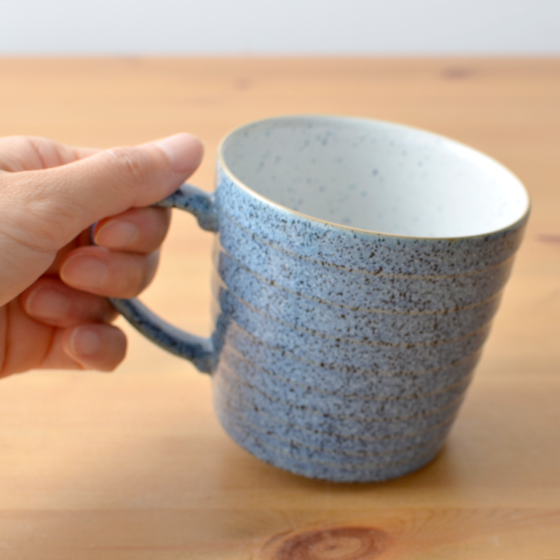 カジュアルな印象のスタジオブルーの大きめのマグです。